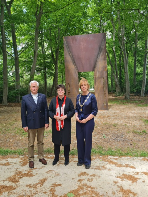 De Commissaris ontmoette bij dat moment de voorzitter van de Stichting Bezoekerscentrum Militaire Begraafplaatsen Brabantse Wal, dhr. Giel Janssen, alsook burgemeester Margo Mulder. Zie de foto.